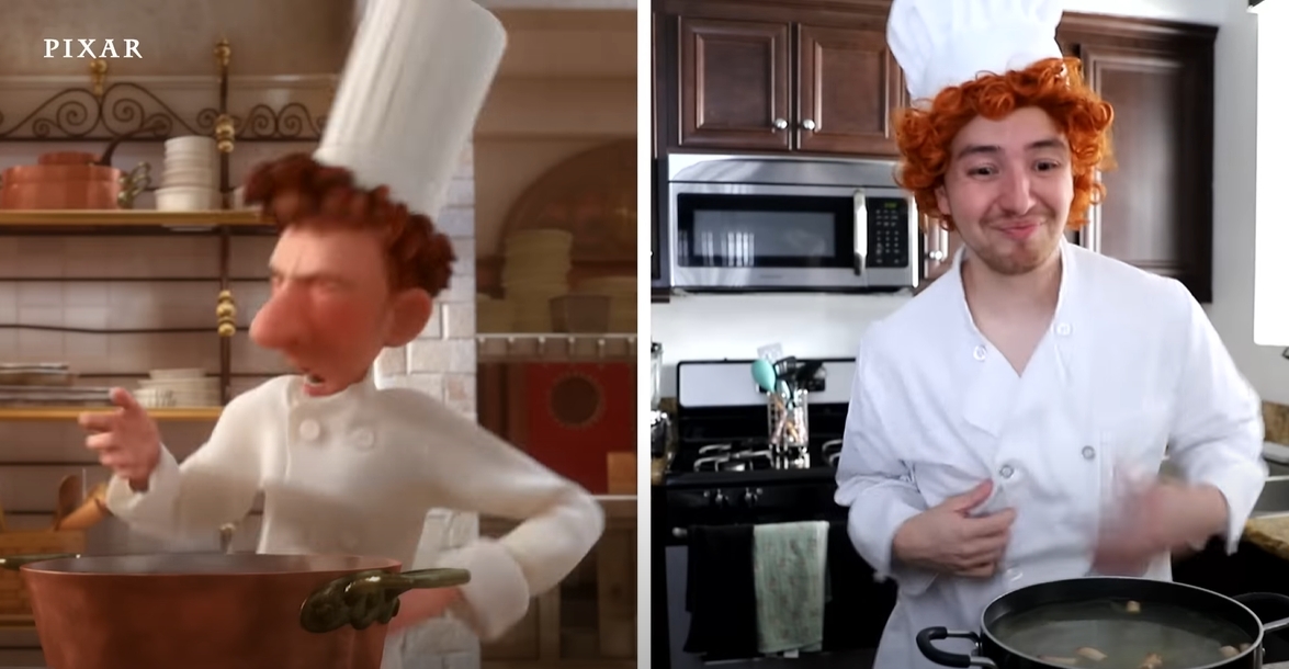 皮克斯官方於上個月30日上傳了一部《料理鼠王》的二創短片,他們蒐集了網友們模仿動畫電影中的多個經典片段畫面。其中,由網友Joe Mele詮釋美食評論家柯柏(Anton Ego)正在品嘗雜菜煲(Ratatouille)一菜的橋段,男主角小林所做的鄉村家常菜獲得了吹毛求疵的柯柏的讚賞,網友連柯柏被勾起小時候回憶的片段也模仿得維妙維肖,同時也喚回大家對於電影的記憶。