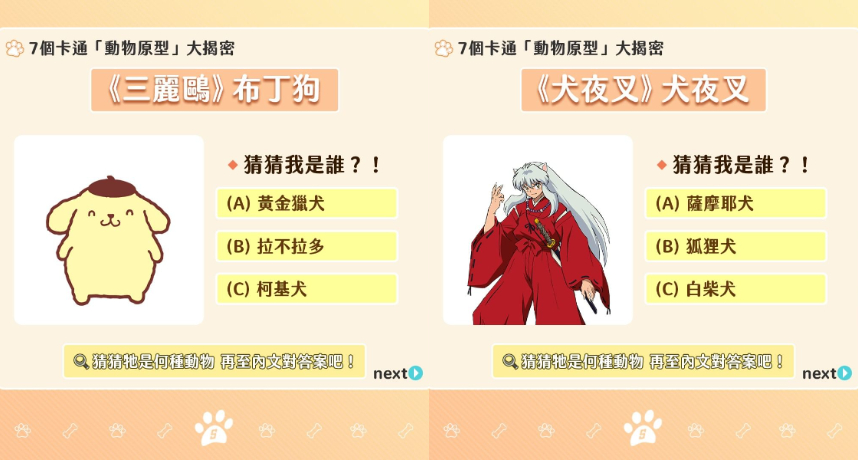 此外,剛拿下三麗鷗人氣肖像大賞第2名的「布丁狗」,雖擁有黃色圓滾滾的身軀,頭上還戴著咖啡色貝雷帽,其實真實身分是隻「黃金獵犬」!至於經典動畫《犬夜叉》主角「犬夜叉」雖然是半人類半妖怪,不過他的原型設定其實也是超常見的寵物犬,作者曾表示因為喜歡像柴犬或巴哥的平板臉型,再加上日本有相當多人飼養柴犬,因此最後就選定「柴犬」作為原型!