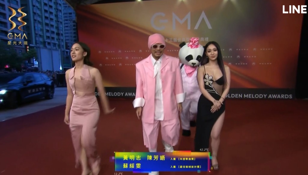 金曲33/陳芳語開衩「大腿根部」全都露!黃明志攜小熊貓超粉:玻璃心要有她
