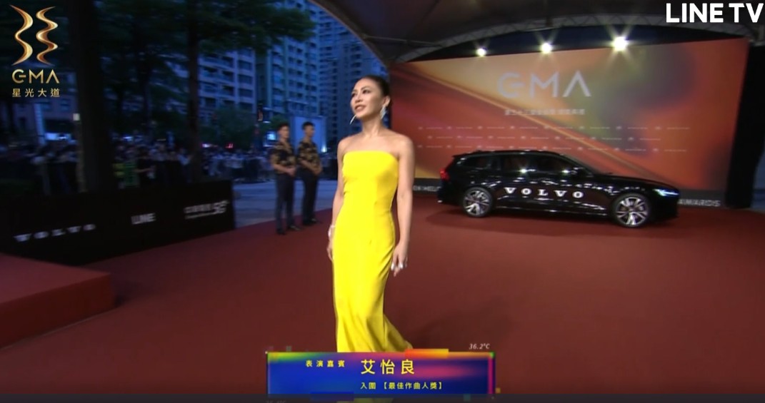 這次她以英國品牌Safiyaa的黃色平口禮服辣登紅毯,並配戴寶格麗SERPENTI系列首飾,展現女王霸氣風範,雖然今年與歌后擦肩而過,但仍以獨自完成的單曲《貪》入圍,她表示《貪》是每個人心中都有的雜念,透過MV,與導演一同合作,將「貪」提升到不同層次的階段。