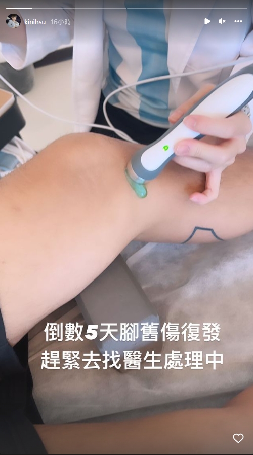 羅志祥經紀人5日透過IG限時動態PO出羅志祥的就醫照,並表示「倒數五天腳舊傷復發,趕緊去找醫生處理中!」照片中可以看到,醫師拿著儀器在為他治療,而根據《ETtoday》報導,當天在定裝時,經紀人就發現羅志祥走路不太正常,詢問過後才得知他的膝蓋已經痛了整整三天卻沒告知,經紀人便趕緊幫他安排治療。