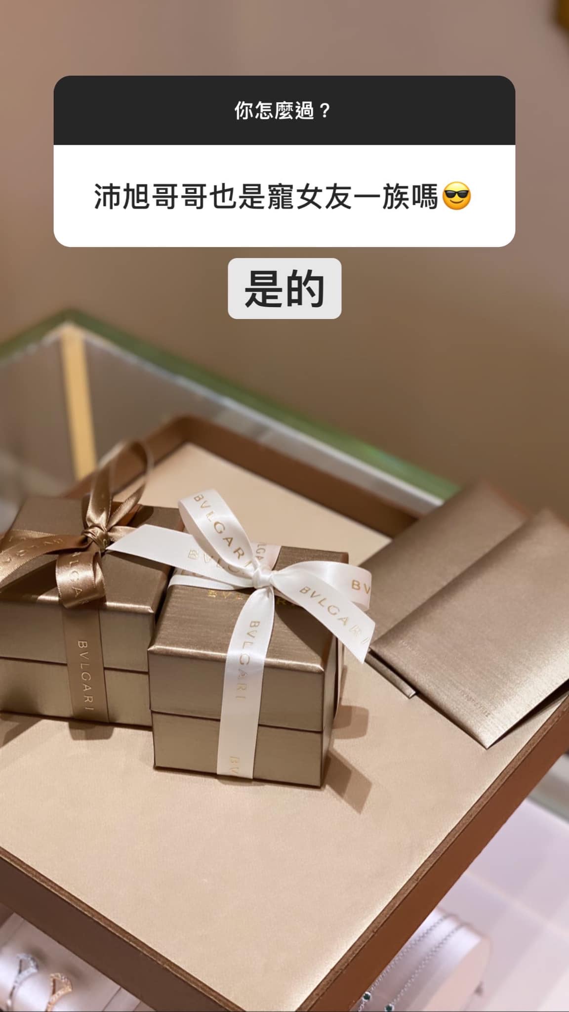 而根據《ETtoday》報導,李沛旭老婆是圈外人,他相當保護老婆的隱私,像是年齡、職業、長相都不曾對外公開,兩人過去也愛的十分低調,直到近期才會大方放閃,像是會曬出激吻照、情侶裝照,甚至還大手筆買下寶格麗送給女友!引人注意的是,照片中盒子數是兩個,從官網中還可以發現他們手上婚戒的相似款,推測前不久就已經完成了求婚,相當浪漫!