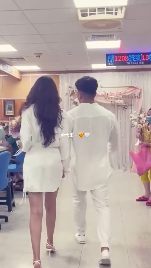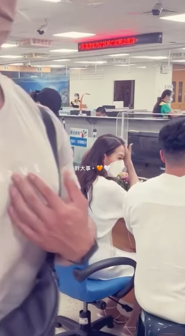 李沛旭8日在臉書曬出登記結婚的影片並開心表示「幹大事!」從他貼出的影片中可以看到,他身穿全白色系套裝,一隻手拿著登記的文件,一隻手緊緊牽著老婆,而女方則是身穿白色洋裝,露出性感美腿,一隻手拿著漂亮的花束,兩個人的色系互相搭配,看上去像是一對幸福小天使一樣,甜蜜蜜的氛圍完全藏不住!