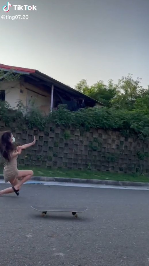 鵝肉女神玩滑板超仙!下一秒軟腳狂奔「四腳朝天慘摔」 爆笑畫面曝光