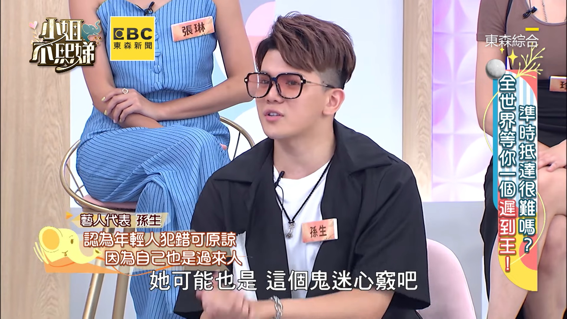 不僅如此,孫生還自爆坊間流傳著一句話,「孫生不是在路上,就是在女生的大腿上」,除了愛遲到之外,還是個風流的人!對此,小S便好奇詢問是否會罵女生,他則表示,自己工作比較焦慮的時候,如果女友又在一旁吵鬧的話就會叫對方「不要吵!」至於女生什麼行徑是地雷,他表示,「偷吃被我發現,滿爆炸的,可是我隔天又好了」,並解釋因為認為年輕人都會犯錯,即使有發生性行為,「不要情感出軌就好啦,她可能是鬼迷心竅吧!」展現出超大方的一面!