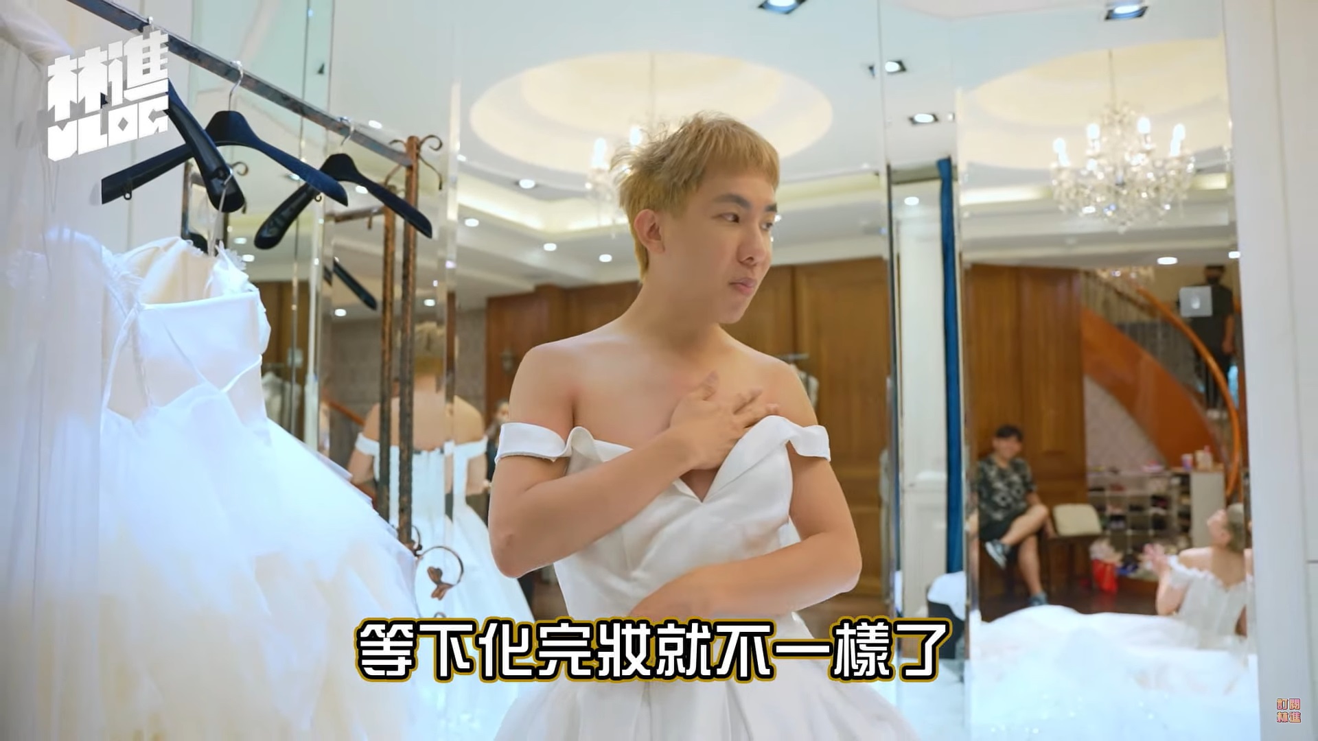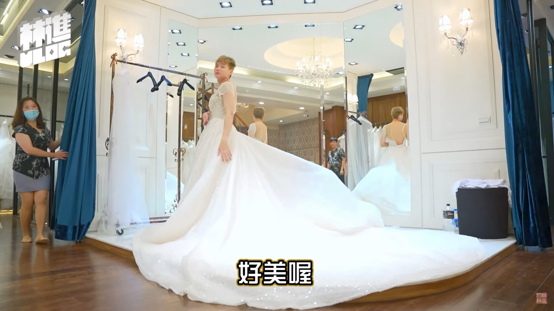 林進在新片中表示,這次要帶著小寶一起去拍婚紗、製造回憶,所以決定要罷工一天!而他透露自己最喜歡復古風格,兩人先是試穿了各式各樣的白紗,而小寶無論穿什麼都相當適合,有種「巴黎小公主」的風格,反觀林進則是有些黯然失色,他笑稱可能是自己膚色太黑,有種「柬埔寨女僕」的感覺。