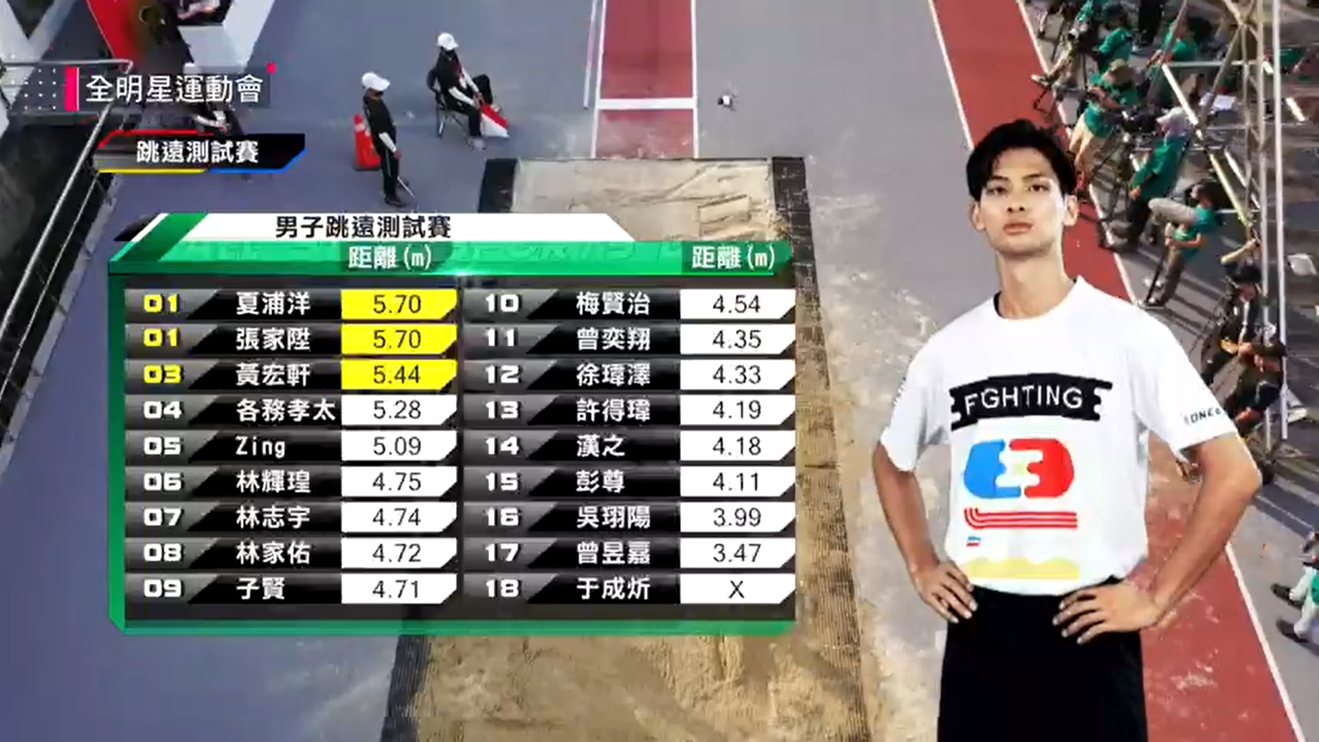 繼上周的跳遠,本集最受矚目的莫過於新人們究竟有沒有超越曹佑寧的大會紀錄,雖然先前曾傳出是由夏浦洋成功締造新紀錄,只可惜播出後證實沒人能突破曹佑寧的6.06公尺,最終夏浦洋、張家陞以5.70公尺並列第一,黃宏軒則以5.44位居第二,女子組則是由賴ki、林玉書以3.86並列第一。