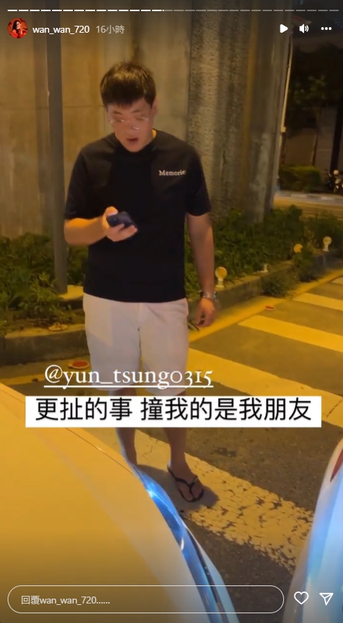不過更扯的是,肇事駕駛竟然是宛宛兒的朋友,讓她忍不住當場向對方抱怨,「你會不會太誇張了?你開車撞我?」並直接跟朋友索取修車費,而對方看到她在拍攝,便尷尬到立刻逃走,場面相當有趣!由於事情真的又氣又好笑,她將此事記錄下來並發在臉書,「破車關了!這個月是車關月,宛爺提醒大家,晚上盡量不要在路上開車、騎車」,最後也不忘報平安,要大家不必太擔心。
