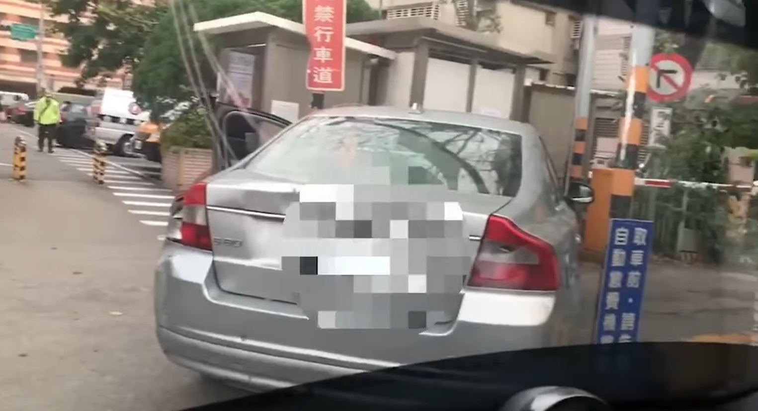 只見影片中,一台銀灰色的車子就直接斜停在出口處,駕駛則是在管理室繳費,諷刺的是,車子旁邊的告示牌正好寫著,「取車前,請先到自動繳費機繳錢」,還可以看到後方駕駛因為不曉得前面發生了什麼事,所以紛紛下車查看,影響了至少十位用路人,難怪讓張本渝都看不下去。