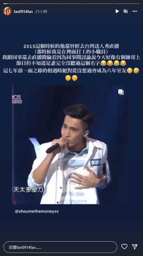而焦凡凡9日轉發該篇貼文並透露2015年時,婁峻碩曾參加《台灣達人秀》的直播工作,當時她正好是公司職員,事前就有聽聞會有帥哥會來上節目,「我跟同事還去直播間偷看」,但當時婁峻碩的名氣不高,所以她完全沒聽過對方的名字,因此也不認識對方。
