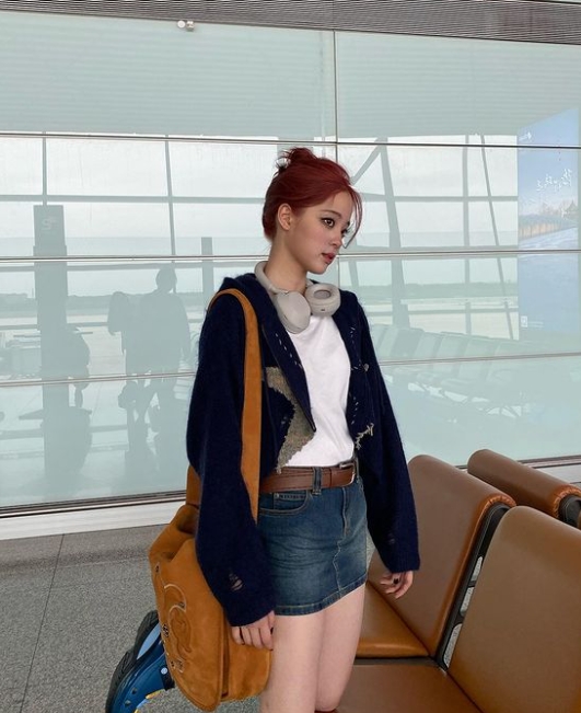歐陽娜娜頂紅髮現身機場!牛仔短裙露「粗壯蜜大腿」 鏡面反射攝影師動作全露餡