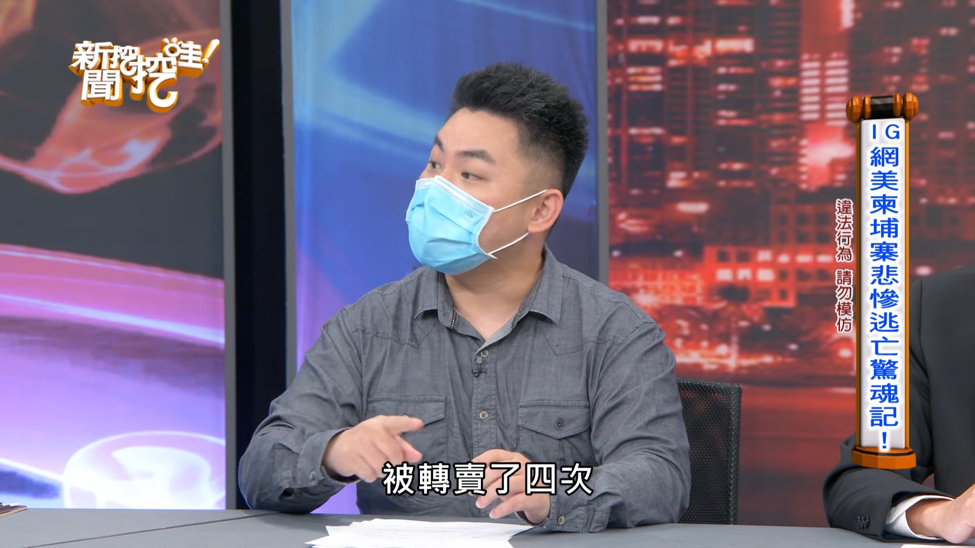 全球反詐騙組織(GASO)的成員Sammy在《新聞挖挖哇》節目中透露了一名IG網美受騙的故事,他表示當事人原本就有在接國外的工作,但殊不知這份工作實際上是一場騙局,她一到當地護照就被收走,人身自由受到控制,在短時間內就遭到人口販賣集團轉售四次,更可怕的是,短短七天遭到侵犯的次數高達9次,直到最後已經不成人形,相當可怕!