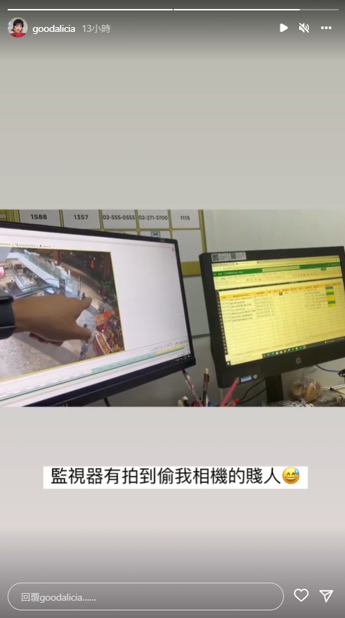 由於報案單上寫的是泰文,第一時間無法得知是出於何種原因報案,因此讓許多網友相當擔心愛莉莎莎的安危,她隨後也再度發文報平安,並解釋是「相機跟錢包都被偷了」,已經在泰國曼谷的警局完成報案。接著,她又分享了一段監視器畫面,讓她氣到忍不住爆粗口,「監視器有拍到偷我相機的賤人!」