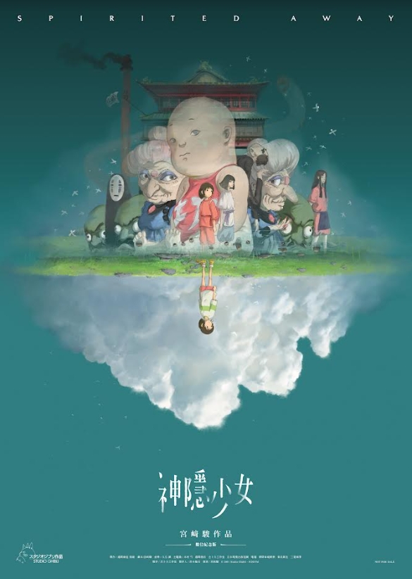 視覺設計大師方序中、插畫家董十行同樣深受啟發,為《神隱少女》所設計的「台灣限定」宣傳海報富有深刻意涵,設計成鏡像反射象徵時間更迭的對比,海報可以被上下翻轉,則象徵兩種輪迴互成因果的心境與歷程,可能正在勇敢地回頭向過去的自己微笑,或是還在尋找朋友與希望。此外,海報背景選擇使用介於大地與藍天之間的青藍色,呼應電影劇情圍繞著關於「河川」的舊時記憶,以「水」為元素視為一體。