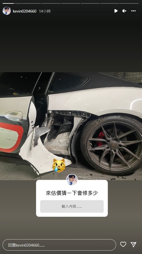 而酷炫事後還苦中作樂,在限時動態要網友猜看看修鈑金總共會花多少錢,由於酷炫沒有多透露發生了什麼事,因此讓不少粉絲相當擔心,但根據其他幾則到訪酒吧的動態來看,人應該是平安無事,只有荷包受傷而已。