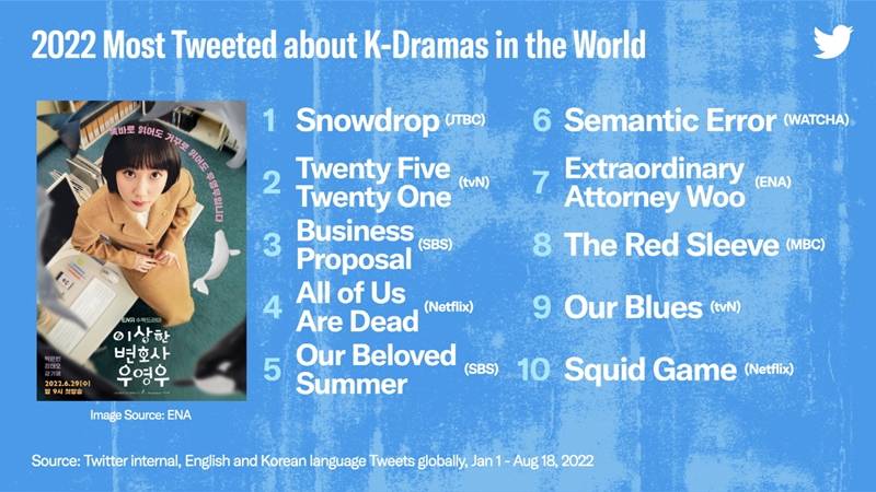 「2022推特提及量」最多韓劇、電影公開!《非常律師禹英禑》僅排第7名原因曝光