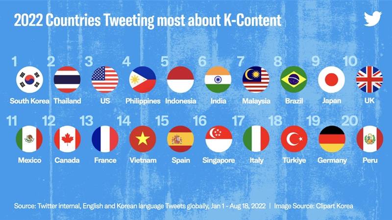 南韓影視產業發達,近年再靠著社群、串流平台席捲全球各地,影響力更是不容忽視!Twitter全球韓流文化合作負責人金延正(音譯)在24日公布了過去10年裡,與韓國有關內容的推特量成長了546%,顯示了K-POP文化的擴展以及全球粉絲的影響力!此外,她還公開了今年前10名推特量最多的韓劇,引起了粉絲熱議!