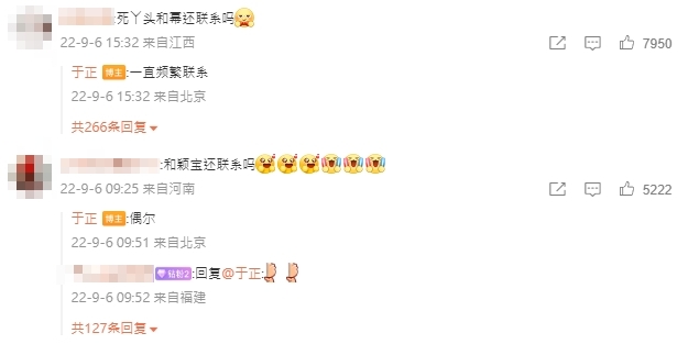 于正被網友問到是否還有跟楊冪、趙麗穎聯絡,他大方坦言和楊冪聯繫頻繁,但趙麗穎偶爾才會,他也提到自己對其他藝人的看法,包括Angelababy顏值高、人品好;任嘉倫既謙卑又努力;宋軼很有禮貌;周也是特別好的女孩,前途無量;楊超越耿直有趣。