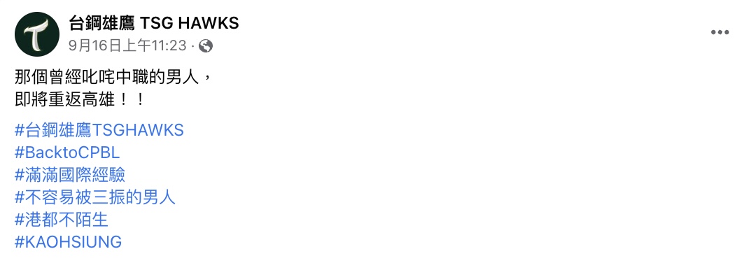 台鋼上週五先在社群媒體上貼文引爆話題,「那個曾經叱吒中職的男人,即將重返高雄!」並在下面留下幾項提示,「#BacktoCPBL #滿滿國際經驗 #不容易被三振的男人 #港都不陌生」,引發外界猜測,其中最多人猜的是現任富邦悍將顧問、前總教練洪一中。但台鋼隔天公布答案,「那個男人」是曾在台灣兩聯盟效力過的路易士。路易士於1988年首度升上大聯盟,效力於堪薩斯市皇家隊,大聯盟生涯總計3年出賽55場擊出29支安打(含6支二壘打、兩支三壘打)、7分打點。