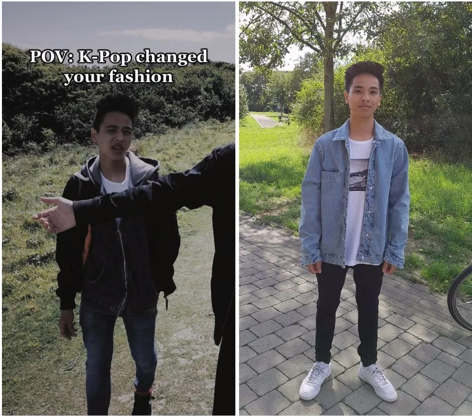 BTS成員們各個穿搭有型,也時常受邀出席時尚活動,甚至也成了不少粉絲的「穿搭指標」!有趣的是,近期南韓論壇《theqoo》有網友PO文比較一位越南粉絲接觸KPOP的前後變化,原先他的穿著較為休閒,多為牛仔褲、防風、牛仔外套,甚至是運動短袖短褲的穿搭!