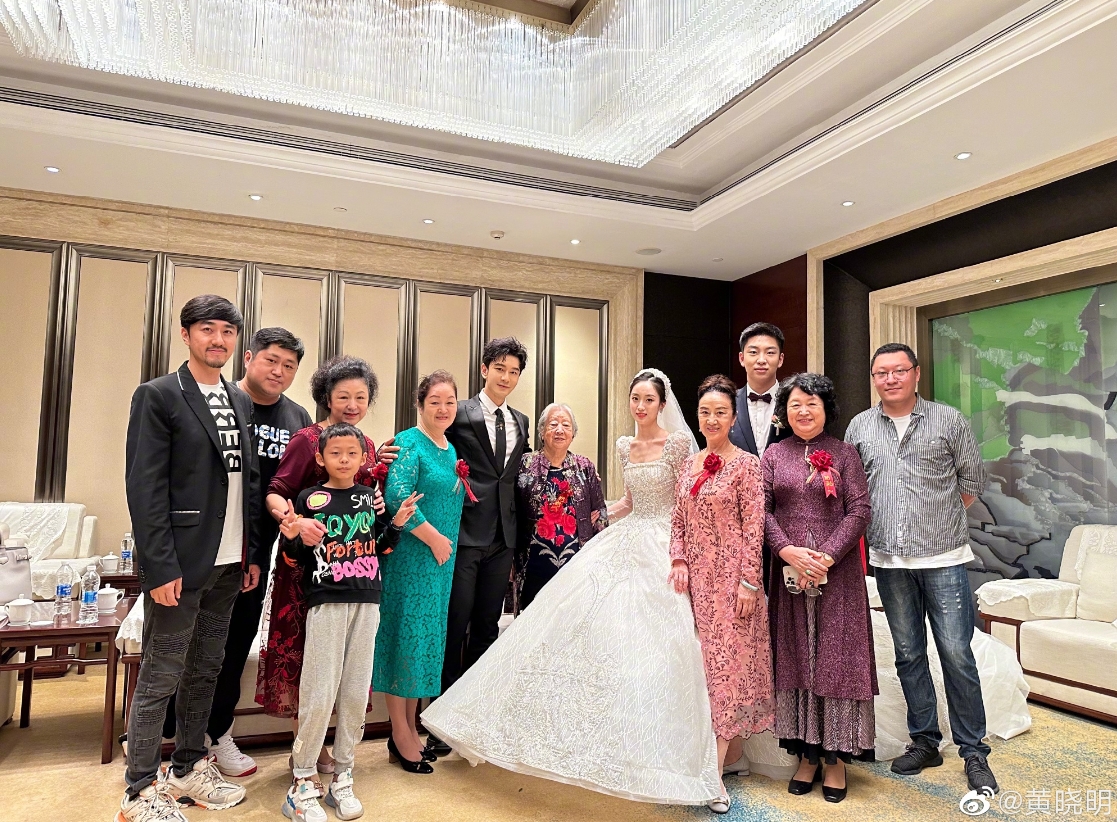 婚禮上的合照曝光,黃曉明的家人親友們一字排開,各個都是高顏值,連表弟張灵燊的妻子都被形容「身材高挑,氣質婉約,頗有林黛玉的感覺」,過程中新娘感動落淚,黃曉明發現立刻將面紙拿給表弟,要對方輕輕擦,別把新娘美美的妝弄花,體面的處理方式更是獲得網友大讚。