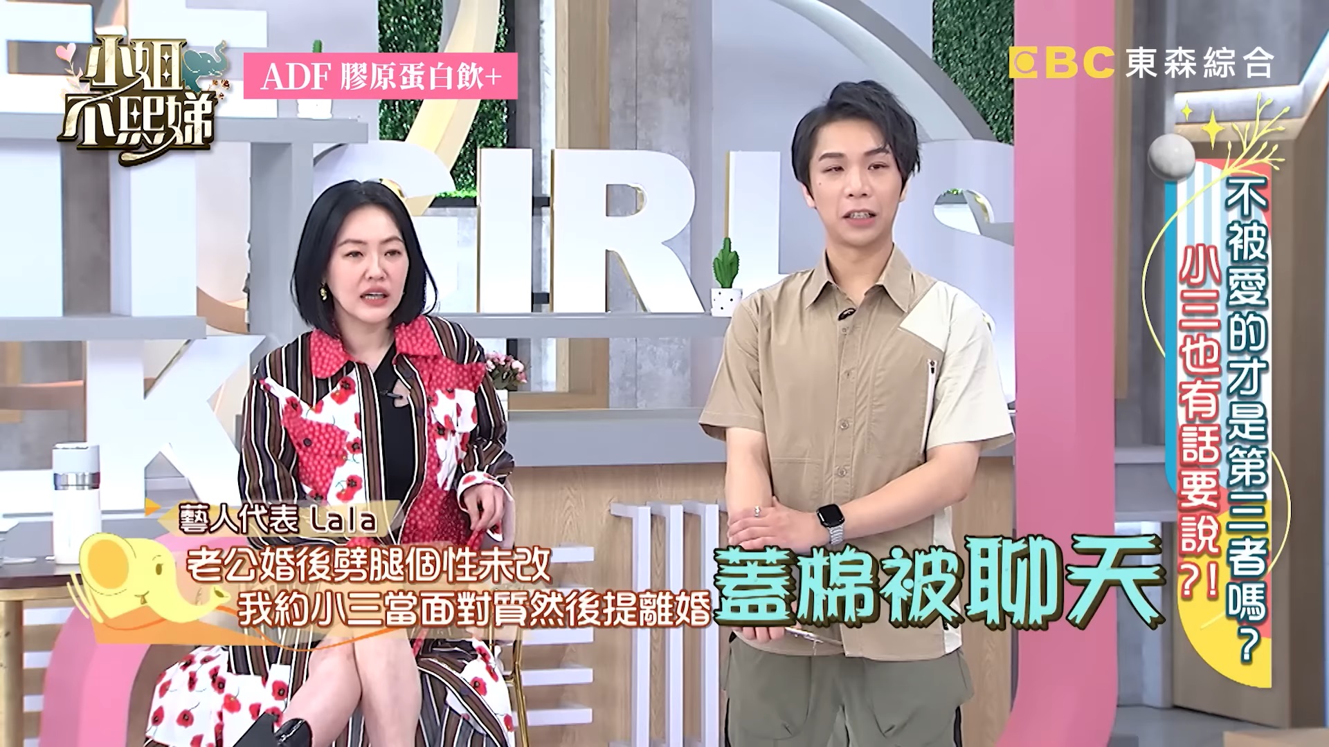 而Lala為了要蒐集證據,所以主動邀小三出來見面,她知道前夫必須負起比較大的責任,因此沒有故意為難,至於前夫跟小三的關係究竟發展到哪一步,對方竟聲稱只有「脫光衣服在床上,蓋棉被純聊天」,如今想起來都覺得很荒謬,眾人聽了也都笑了出來,後來Lala便用這些鐵證與前夫離婚,這才徹底斬斷爛桃花。