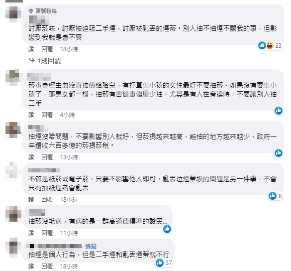 對此,網友紛紛力挺郭鬼鬼的觀點,「抽煙沒啥問題,不要影響別人就好」、「抽煙是個人行為,但是二手煙和亂丟煙蒂就不行!」、「抽菸沒有問題,但是剛好抽菸又沒公德心的人太多」、「如果在不該抽煙的地方抽煙,問題就大了~」但有部分網友認為是「清純人設」的關係,所以才有這麼多粉絲因此心碎。