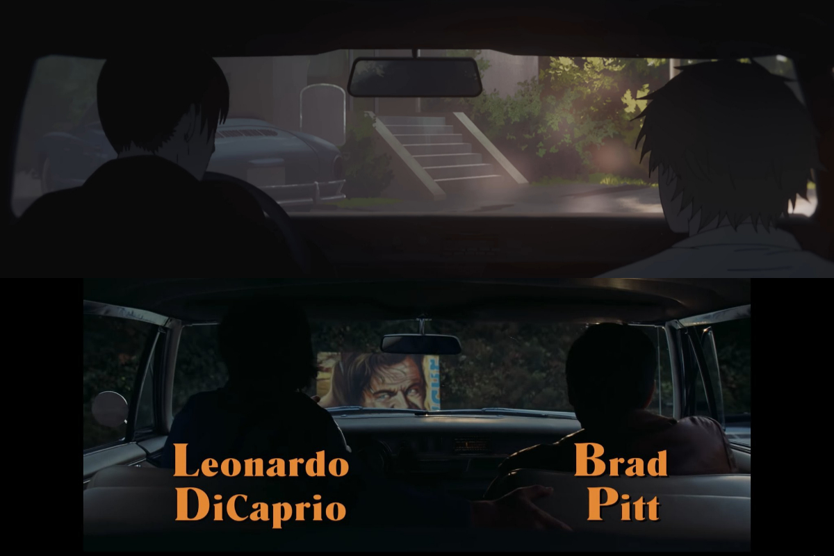 由李奧納多狄卡皮歐、布萊德彼特主演的電影《從前,有個好萊塢》是部動作喜劇片,電影中兩位主演坐在車內的場面與構圖也成為《鏈鋸人》動畫片頭曲的元素之一。