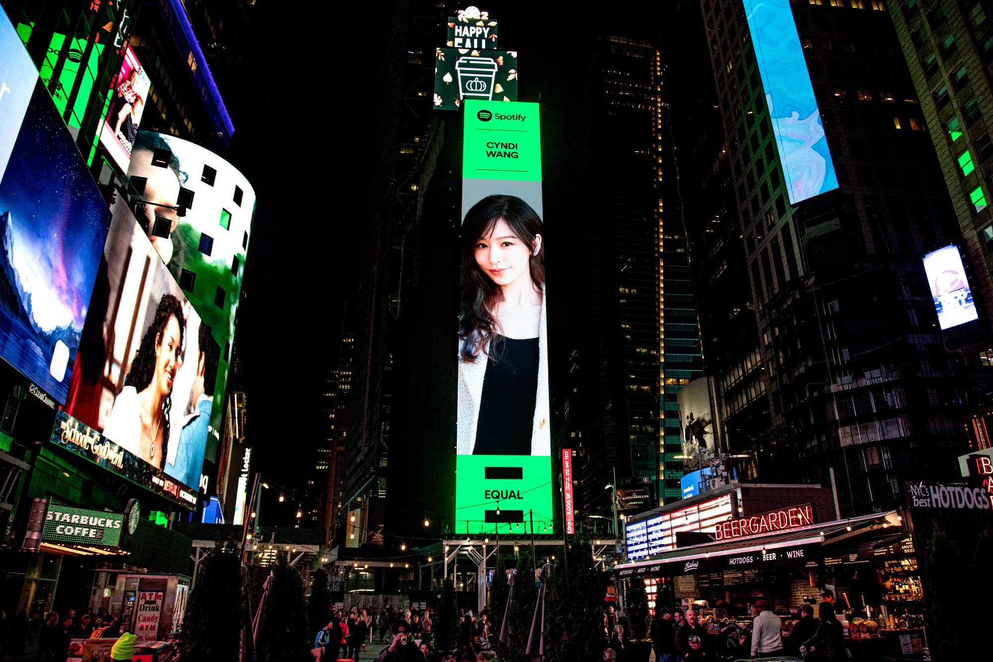 歌手王心凌參加《乘風破浪》後,以冠軍之姿成團出道,不僅拍了許多綜藝節目,也接下來了不少代言,連帶多首歌曲都再度衝進音樂榜單,人氣仍舊居高不下!而她最近還成為音樂平台Spotify《Equal》歌單的封面人物,一舉登上美國時代廣場!