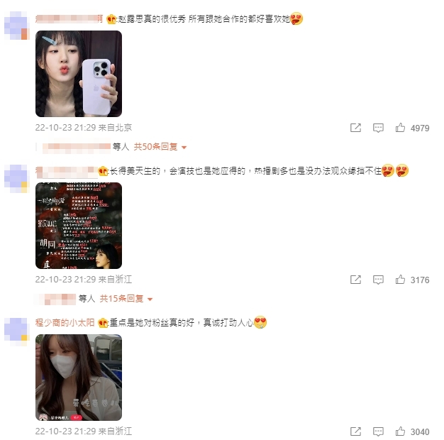 這則貼文被瘋狂轉發,引發不少網友的共鳴,「趙露思真的很優秀,所有跟她合作的都好喜歡她」、「長得美天生的,會演技也是她應得的,熱播劇多也是沒辦法觀眾緣擋不住」、「重點是她對粉絲真的好,真誠打動人心」、「趙露思人美心善,低投資高回報」、「不是粉,但是她的劇基本都看過」。