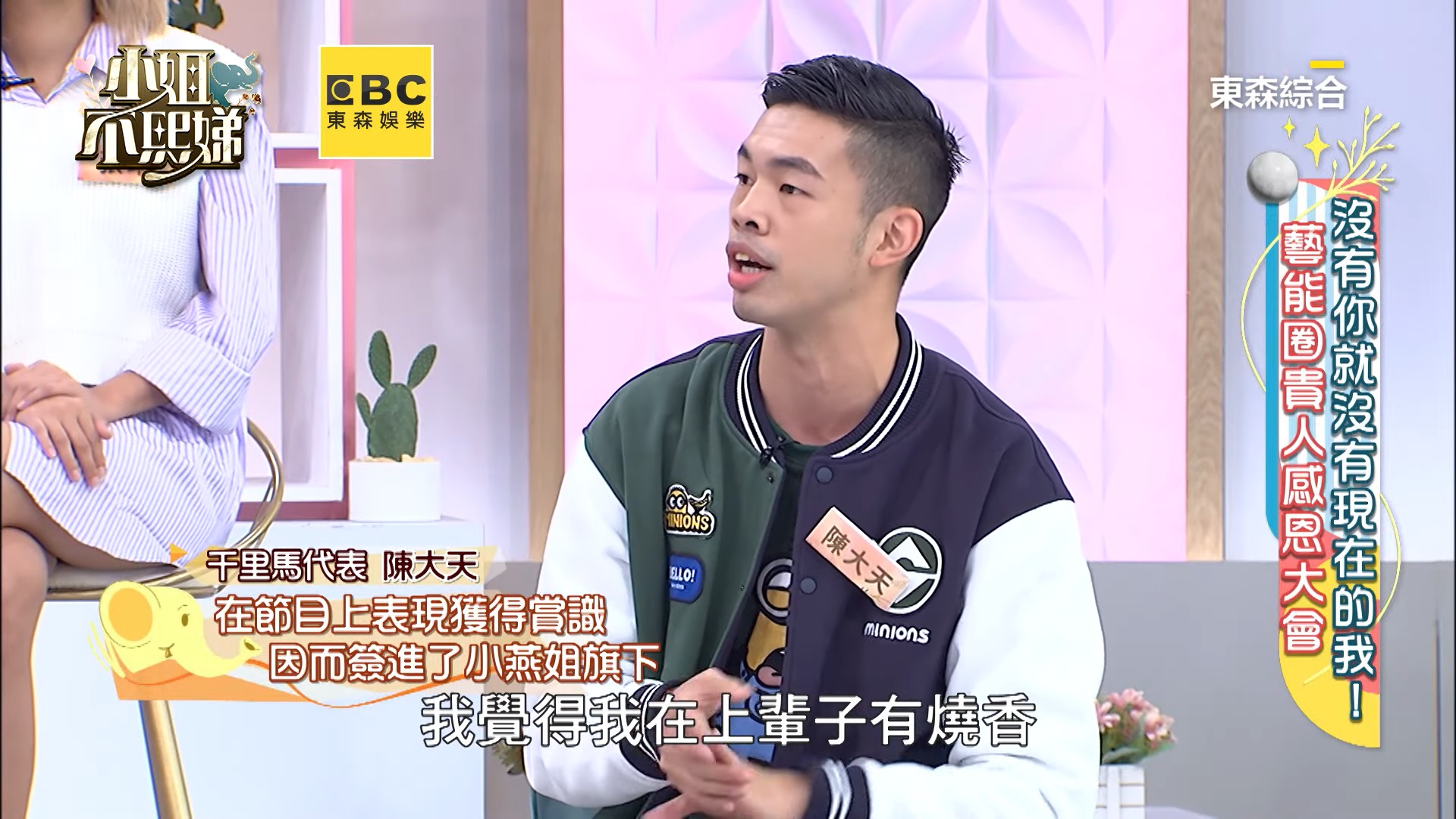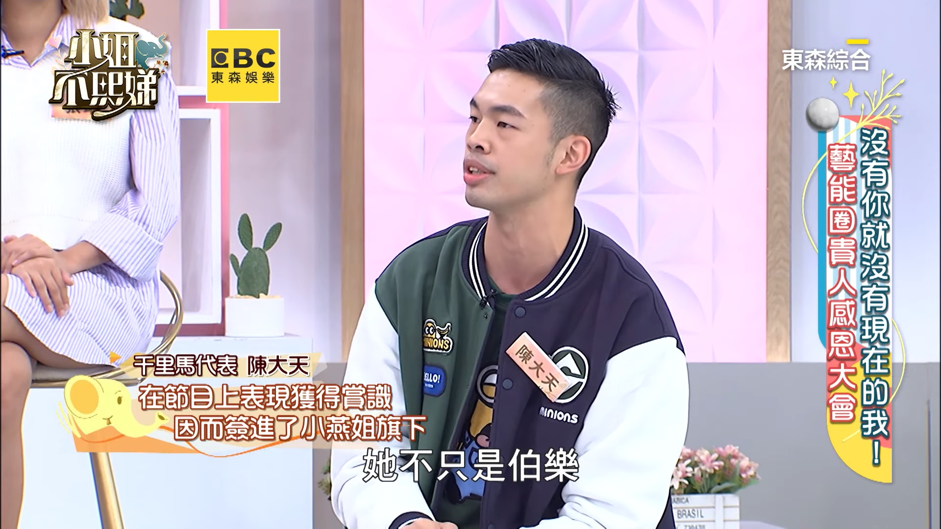 談到演藝圈的貴人,陳大天認為就是現在的老闆張小燕,他形容是上輩子燒好香才能遇到小燕姐,除了是工作上的伯樂之外,私底下還十分照顧他,像是以前感情失利時,小燕姐都會從旁關心、開導,對他而言已經不是老闆,而是生命中非常重要的人。