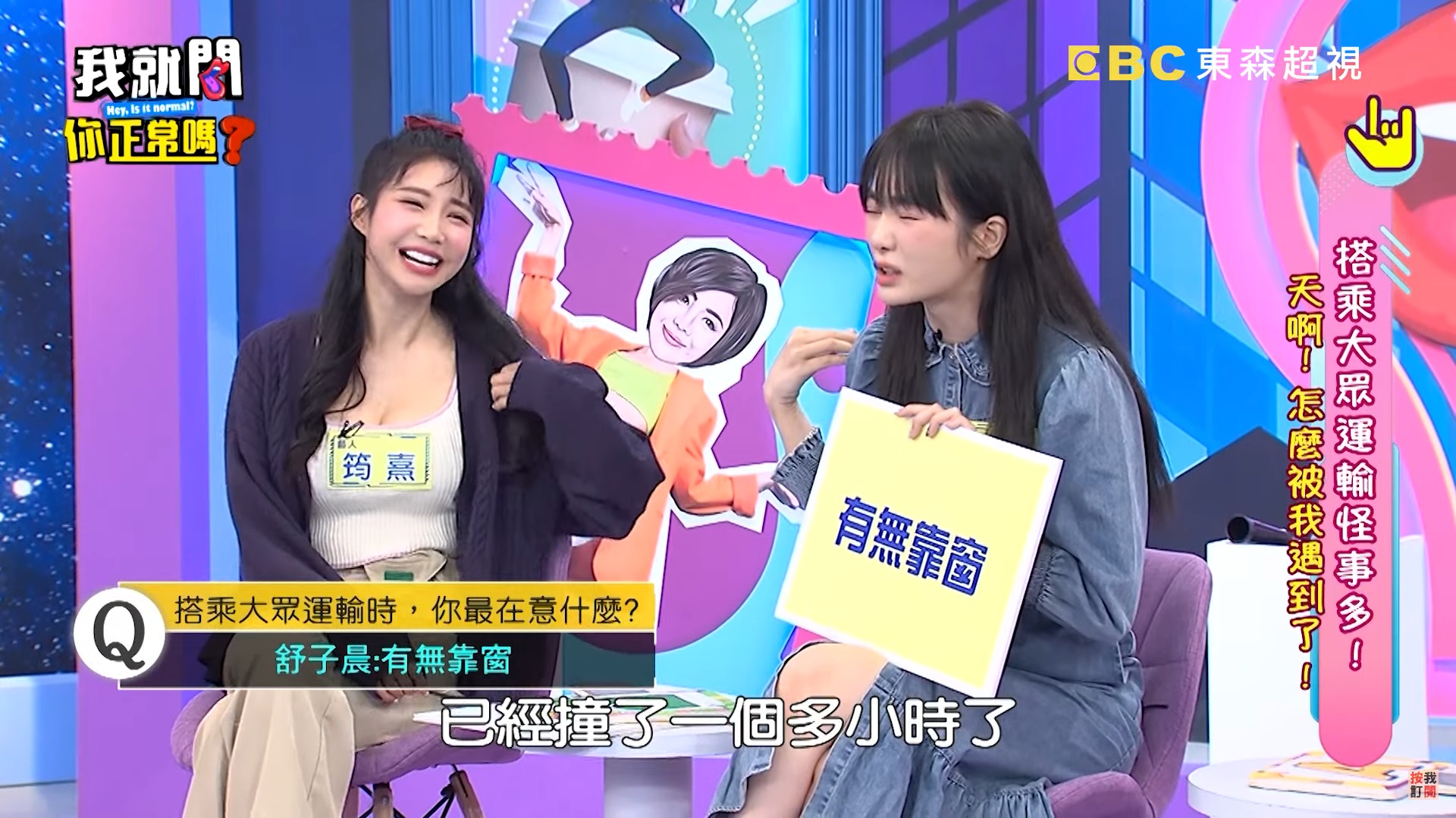 舒子晨在節目上談到「搭乘大眾運輸工具最在意的事」,她透露自己有在車上睡覺的習慣,所以很重視「有無靠窗」,再加上有一次搭公車時在睡覺,卻不斷被站著的乘客推擠,一開始只是以為車上人很多,所以不以為意,但沒想到人潮都散得差不多,卻還是一直被撞,這樣的情況發生了至少一個小時,讓她感到相當奇怪。