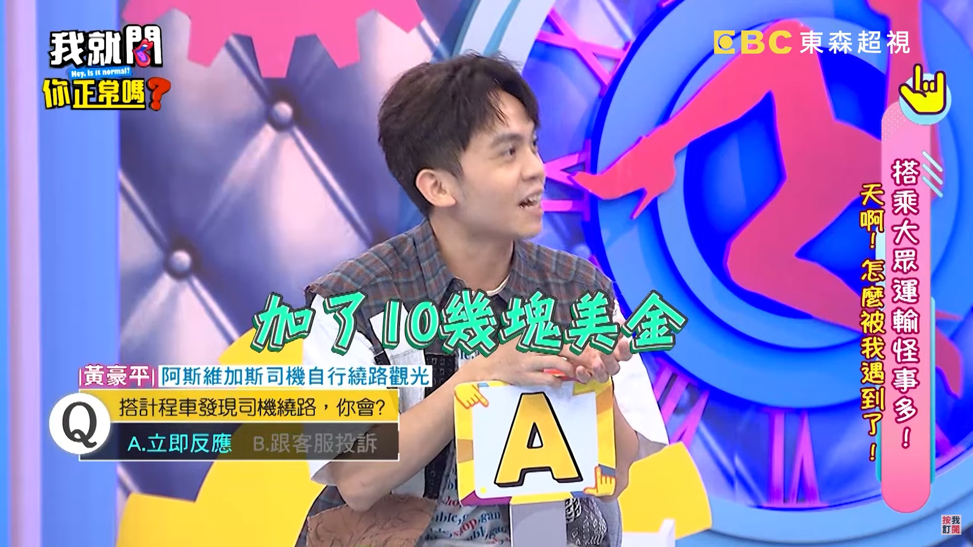 此外,黃豪平透露先前與Eason到美國拉斯維加斯玩,為了方便而搭共享計程車去飯店,上車後,計程車司機先是將兩人誤認成「新婚夫妻」,之後又很熱情地跟兩人聊天,但黃豪平發現越聊越覺得不對勁,原來是因為一開始查到的車程只需要10分鐘,可是卻在車上待了20幾分鐘,詢問過後,對方竟表示:「你們要過去了嗎?」這才發現司機竟然擅自替兩人進行城市導覽,害他們要多花10幾塊美金(約新台幣3、400元)!