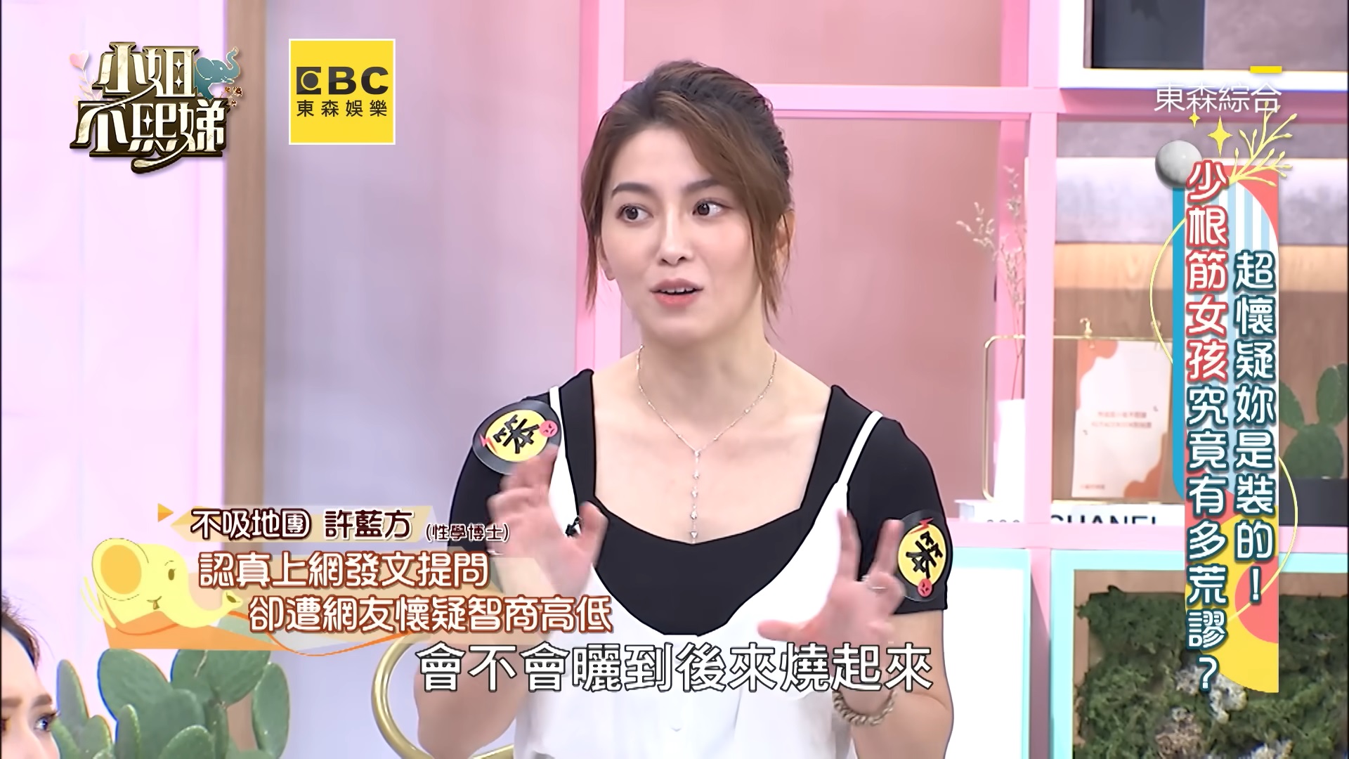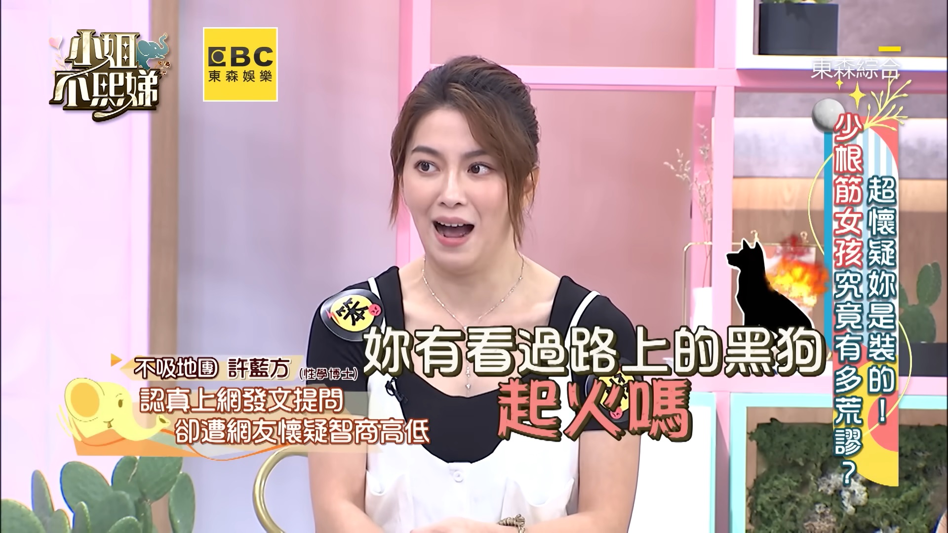 性學博士許藍方雖然在專業領域相當厲害,但私底卻有天兵的一面,像是她日前在《小姐不熙娣》分享「少根筋的荒謬事」,她透露自己有養黑貓,所以好奇要不要限制牠曬太陽的時間,「因為我覺得牠毛是黑的,會不會曬到後來燒起來」,出乎意料的問題讓網友都忍不住吐槽!
