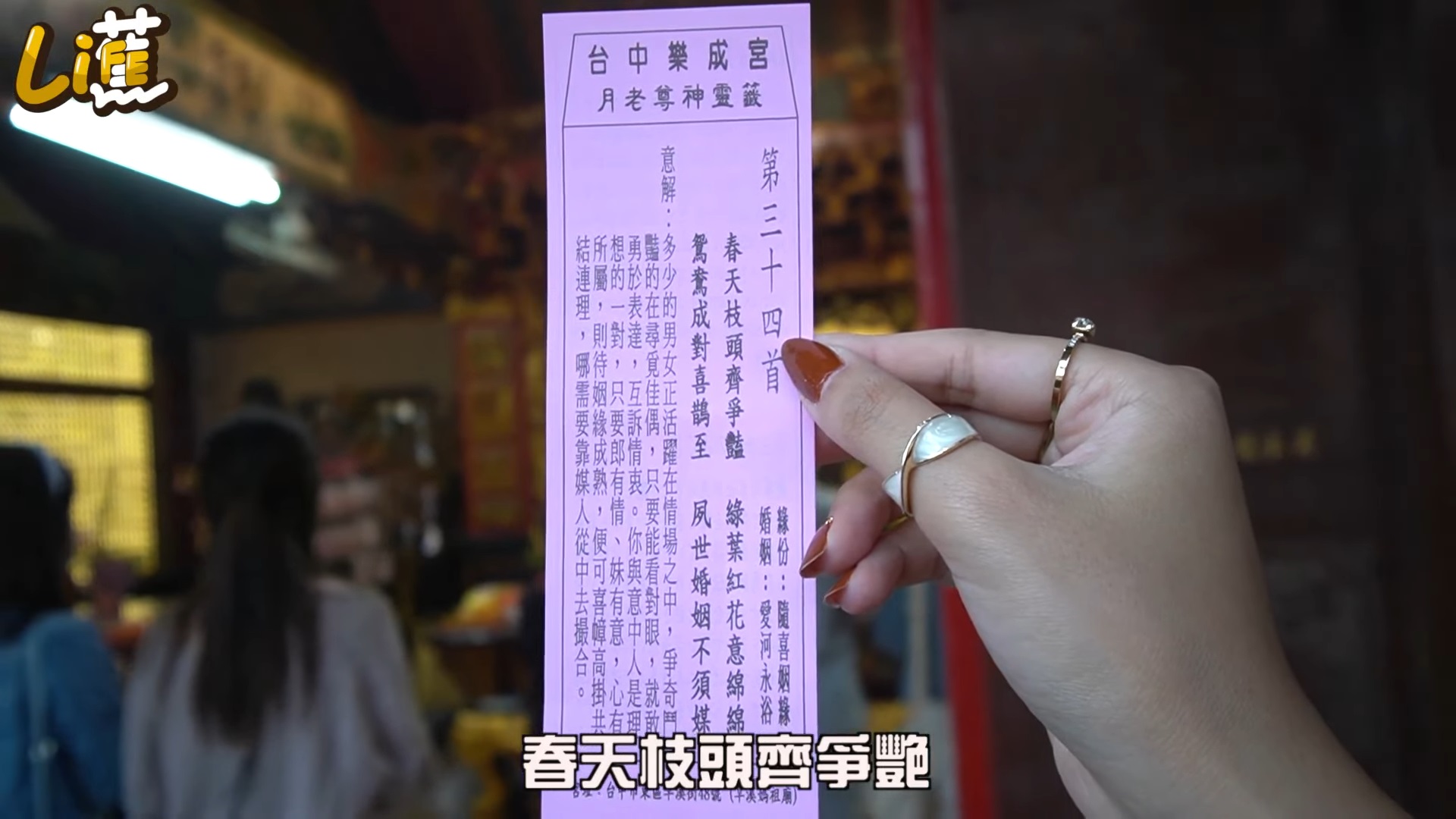 接著,香蕉也向月老求籤詩,結果一抽竟然是最好的「上上上籤」,內容的含意是「你與意中人是理想的一對,只要郎有情妹有意,心中所屬,則帶因緣成熟便可喜幛高掛、共結連理,哪需要靠媒人去從中撮合。」講到一半時,他便被內文感動,忍不住泛淚哽咽,並開心表示:「一切都是好的」!