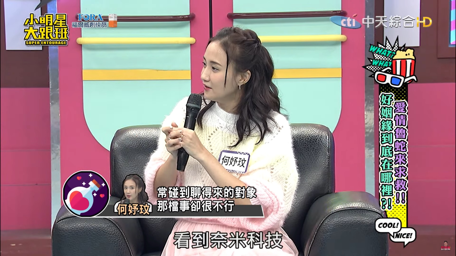 藝人何妤玟日前在節目《小明星大跟班》談到戀愛經驗,她透露年輕時曾遇過性事不合的對象,一開始感覺兩人很投緣,無論什麼話題都聊得很開心,在認識了兩個月終於要發生性行為時,卻發現對方是「奈米」,讓她瞬間興致缺缺,事後跟對方反應卻被指責是「膚淺的女人」,讓她相當火大!