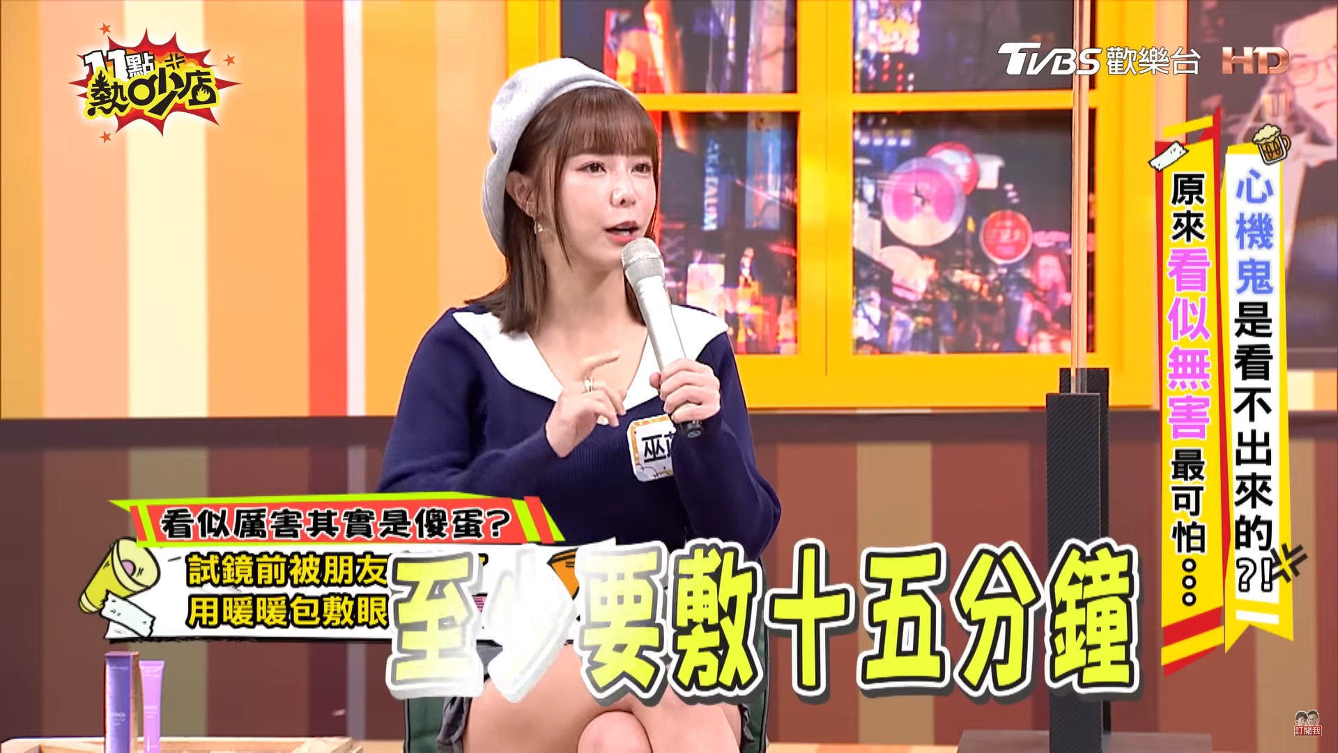 直到試鏡前兩天,巫苡萱透露那陣子熬夜、睡不好,眼睛看起來有些腫脹,於是向那位關心過自己的好友請教如何消腫,對方表示:「要熱敷妳的眼睛」,她一開始以為是用熱毛巾,但對方卻說:「用暖暖包至少要敷15分鐘」,主持人Melody聽了都直呼:「不行吧!」由於對方拍胸脯保證,所以就不疑有他。