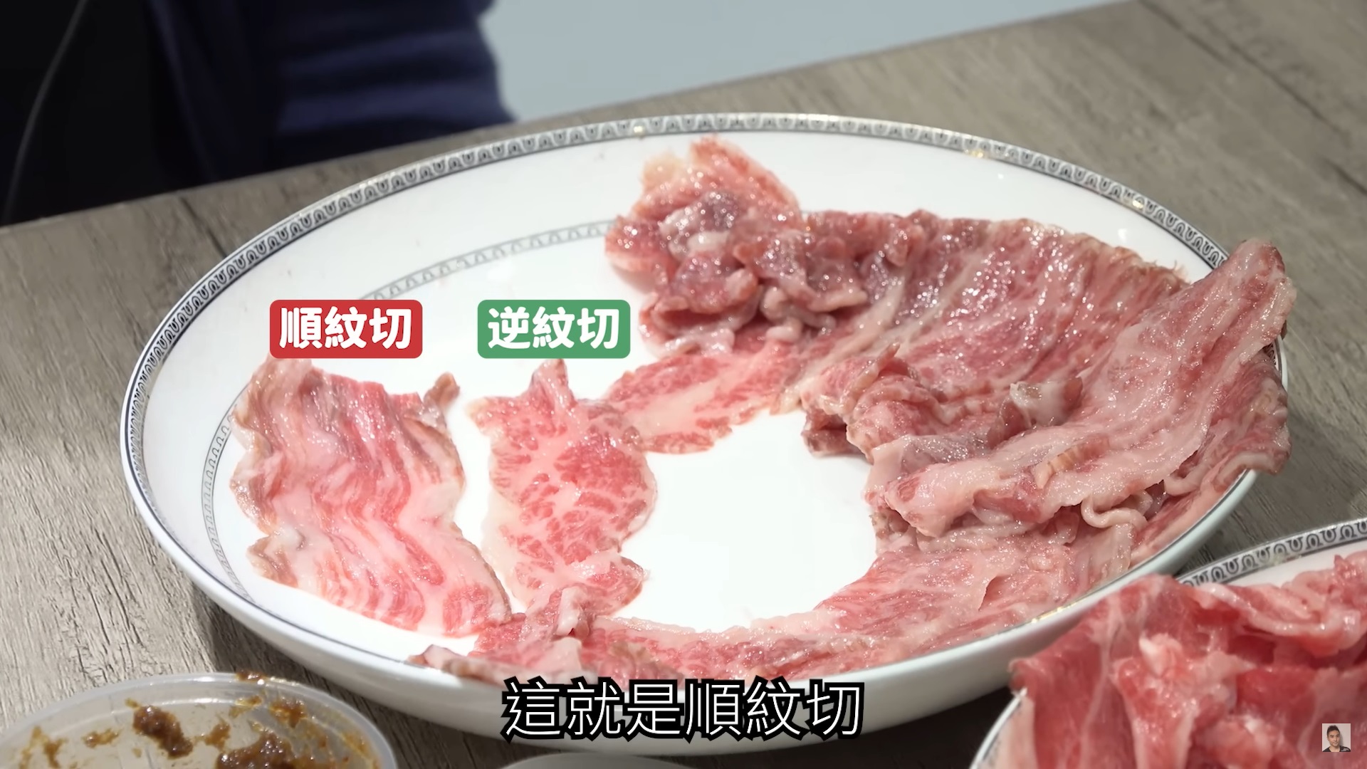不僅如此,香君還點出野人的肉同時有「順紋切」跟「逆紋切」,但是一般來說,店家都會統一選擇「逆紋切」,因為能夠斬斷肉的纖維跟筋,吃起來的口感會比較軟嫩。對照之後還發現,野人的肉油脂分布不均、肥肉比較多,但是香君也解釋:「和牛就是膩」,並非肉質的問題。