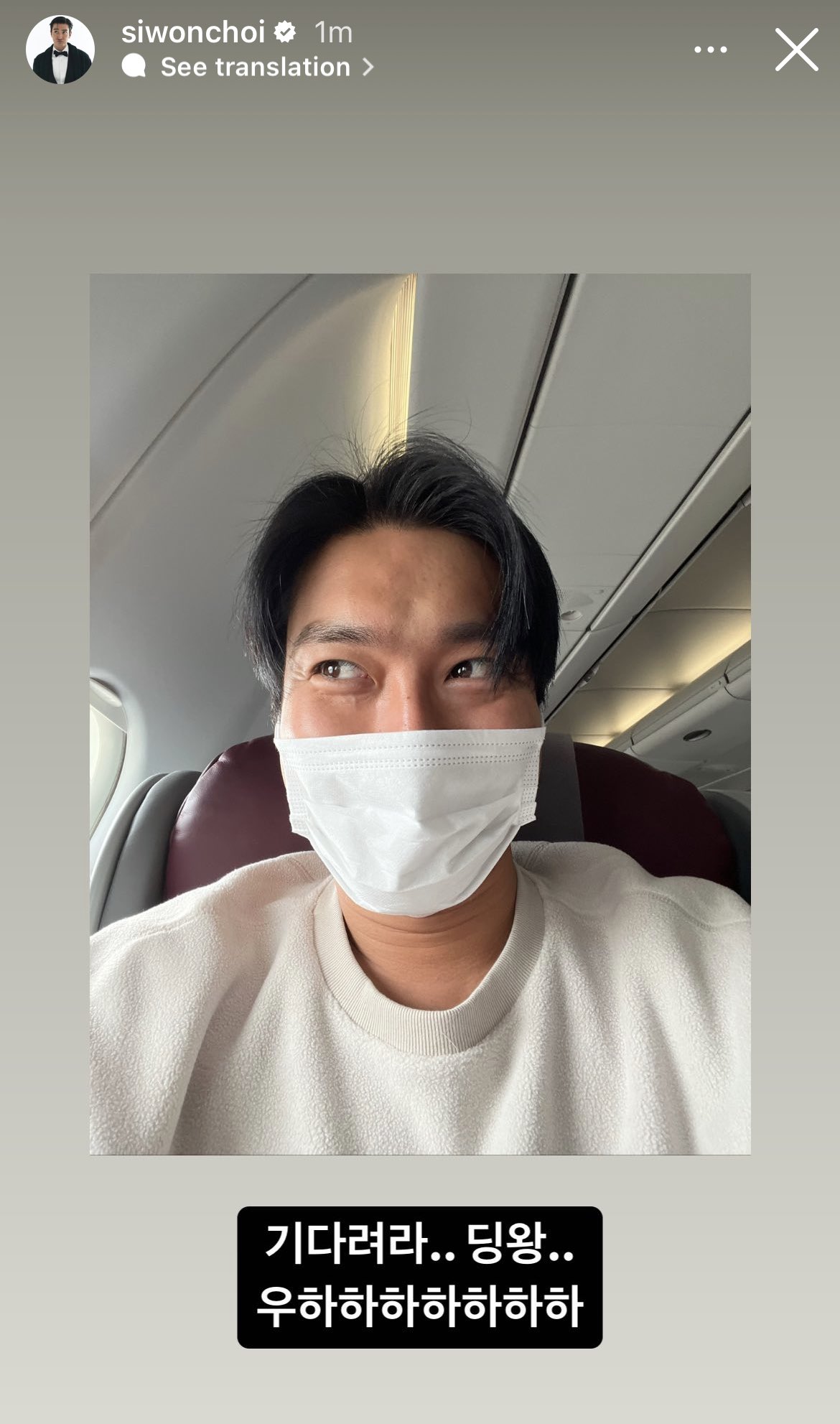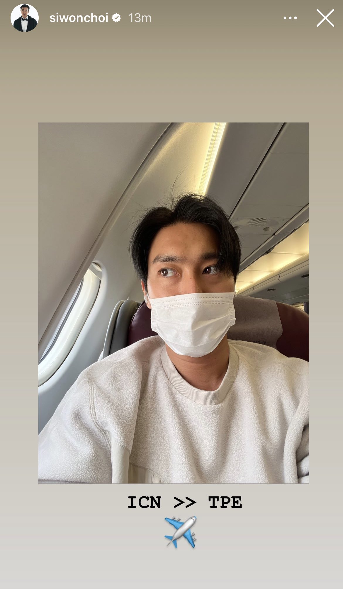 Super Junior將於本週末在台北小巨蛋進行連三天的演出,這是他們睽違3年再度來台開唱,成員們也已先在24日分批抵達台灣!而成員始源在起飛前不但先在社群發文向粉絲們告知即將從仁川機場飛往台灣,另外更還興奮寫道,「等著吧,鼎王(火鍋)...嗚哈哈哈哈!(愛心)」雖然照片中始源戴著口罩,但半瞇著、閃閃發亮的眼睛仍是顯示了他的興奮心情!