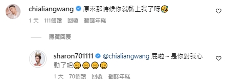 對此,王家梁現身留言區並幽默地說:「原來那時候你就黏上我了呀!」許維恩則不甘示弱地回覆:「屁啦~是你對我心動了吧!」網友們則紛紛笑說:「這就是緣份~這張劇照好可愛,也很開心大王跟維恩很幸福啊」、「命中註定的一對」、「幸福的起點~」