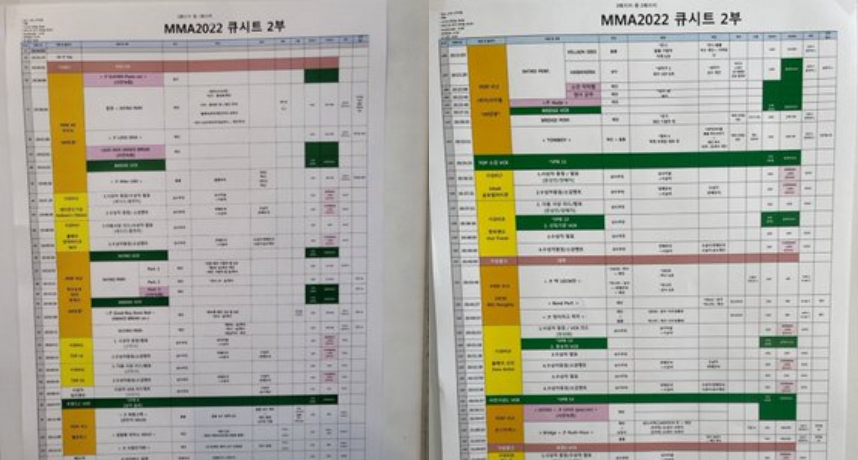 而《JTBC》在報導中也曬出了一份獨家取得的流程表,當中和流傳的版本有些不同,當中,Be'O、ENHYPEN、MeloMance、10cm、Big Naughty、MONSTA X、林英雄使用LIVE MR表演,GOMAK BOYS則是使用LIVE MR進行預錄表演。