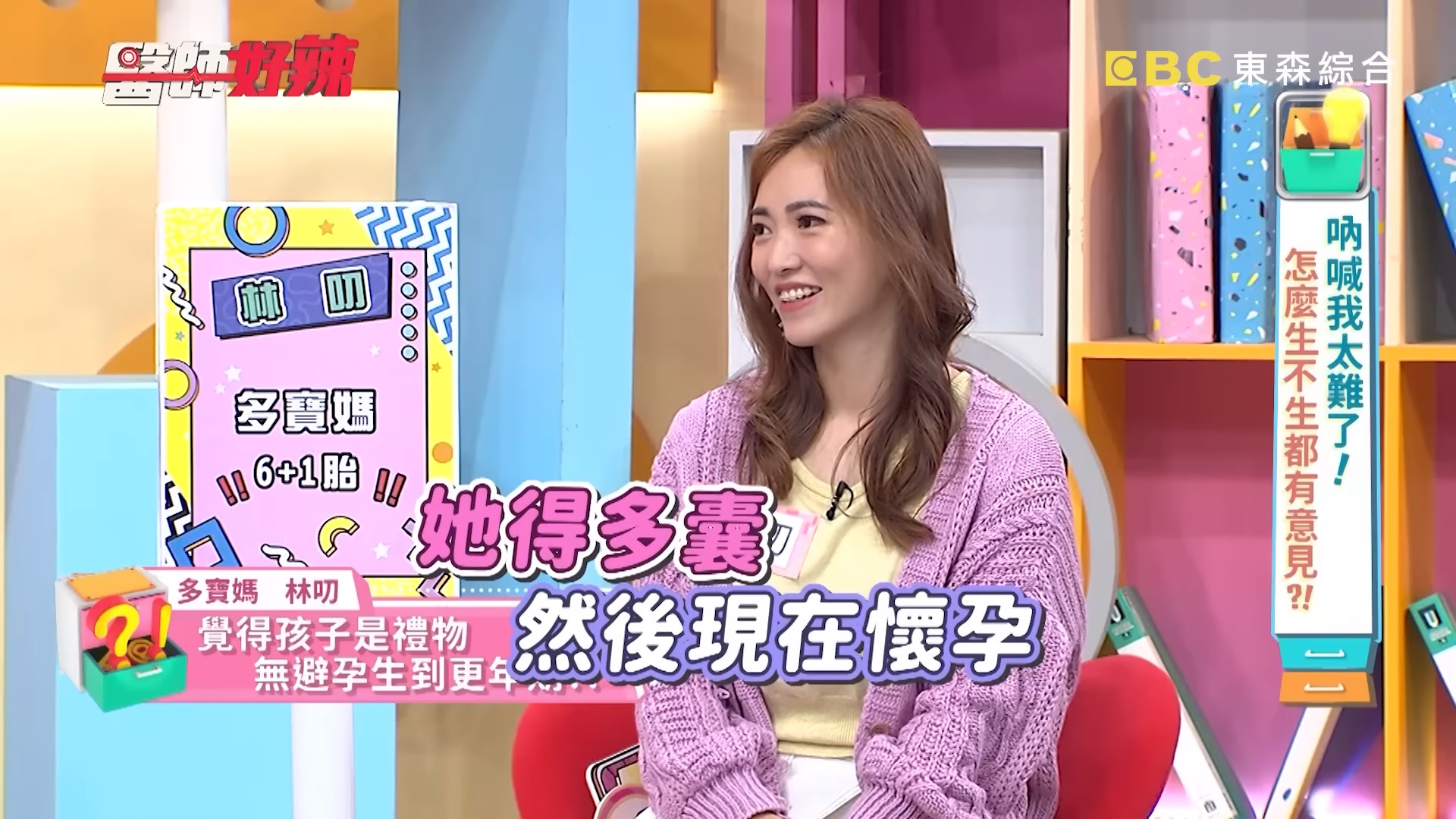 由於生這麼多胎,照顧孩子的時間會被分散,因此嚴立婷詢問:「老大沒有覺得說媽媽都沒有時間顧我嗎?」Sydney則表示孩子都是在家自學,她則是會花一整天的時間陪伴,嚴立婷聽了都驚呼:「我可以跪拜一下嗎!」不僅如此,Sydney透露生完第六胎後,去看醫生才發現罹患「多囊性卵巢症候群」,此症狀之一包含比較不容易受孕,期間有吃藥治療,結果三個月後就順利懷孕!