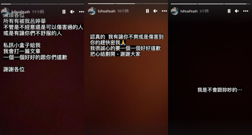 不僅如此,陳希也曬出疑似與第三者的家屬互嗆的對話紀錄,狠批「真的不要再演了啦!你對我怎樣我也都有紀錄,挑撥離間也是妳最擅長的,妳們母女對我做過的事情,我都會一一地告訴大家」,同時不忘向對方拿回被欠三年的50萬。針對離婚事件不斷發酵,當事人華華則不斷發文向外界致歉,更PO出疑似是對陳希喊話的黑底白字文,「我是不會跟妳吵的」,複雜的感情關係掀起外界關注。