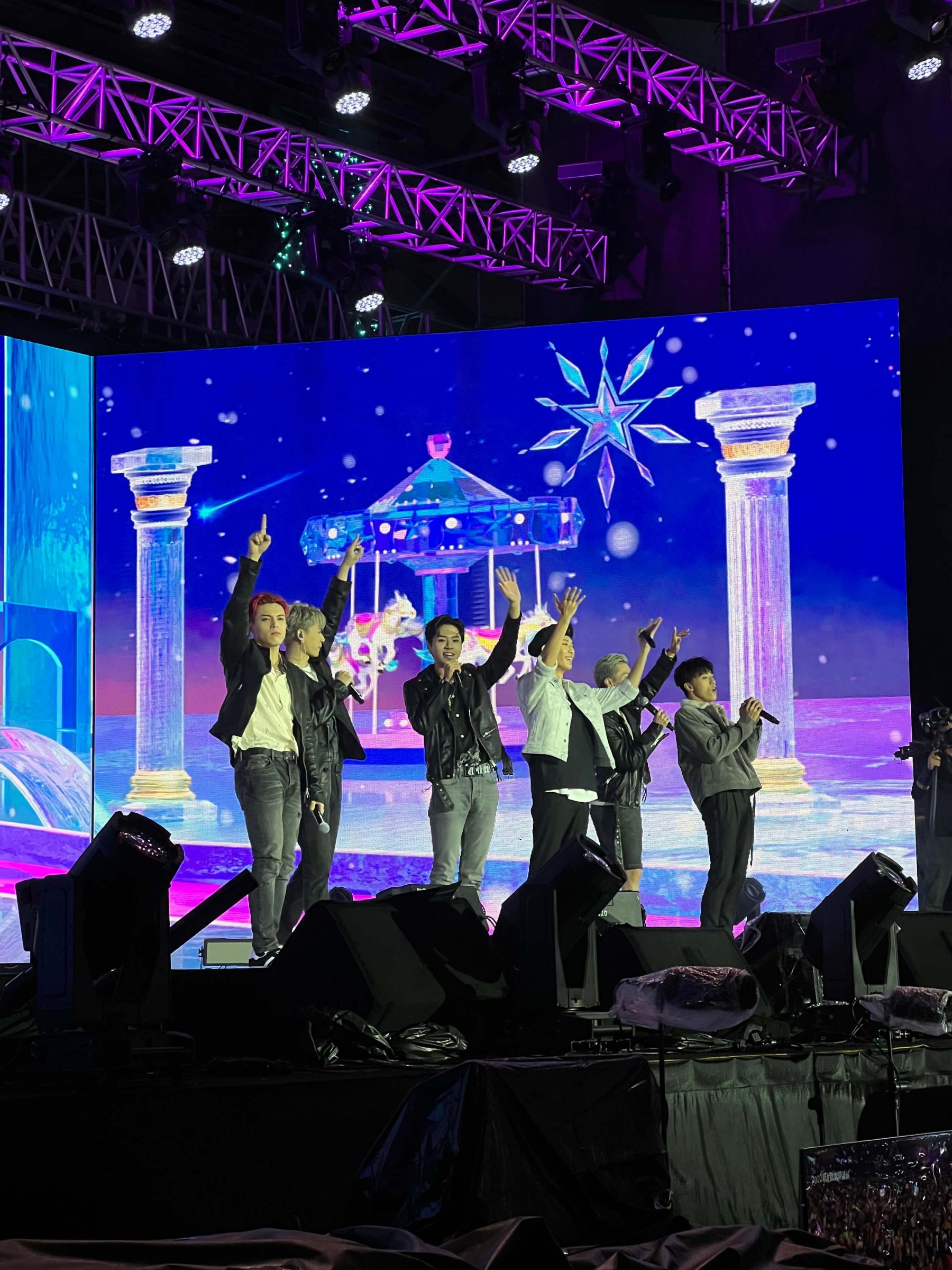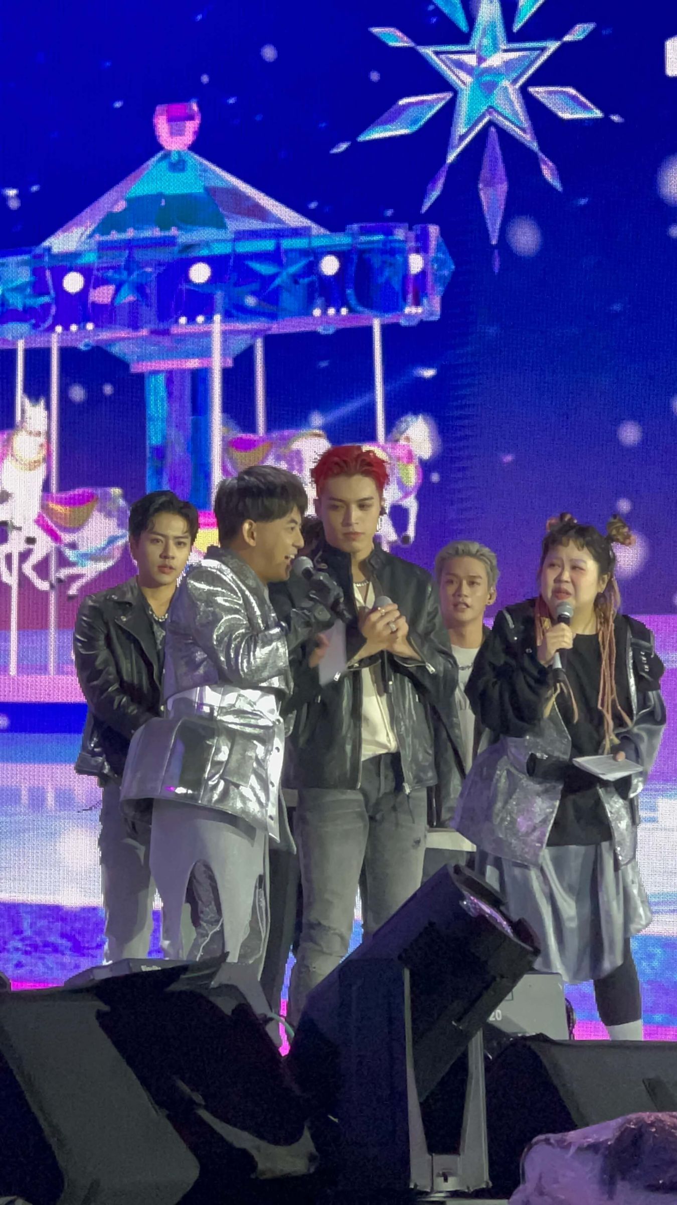 文廷接著補充說,「對啊!而且昨天晚上又下很大的雨,其實我昨天晚上睡不太著,很擔心大家夜排很危險!希望大家來參加活動也要顧好自身的安全」。佳辰也分享了這一次參與耶誕城演出的心情,「這一次表演大家進步蠻多的,真的很感動!」文廷也笑說,「其實大家私下都有再揪排練,在表演上也花了很多心思,希望每一次演出都可以帶給粉絲不同的感覺」。