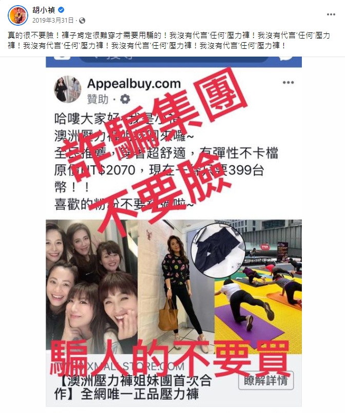 沒想到事隔三年後,相關廣告又在網路上流傳,小禎見狀再度於該貼文下方留言,希望大家能夠以認官方藍勾勾,不要相信來路不明的網路消息。對此,有網友建議「杜絕這類詐騙,最好是小禎以後都用影片來代言,讓網友有方式區隔!」小禎則表示:「影片還是會被剪接好嗎?反正最快最好的辨認方式就是到藝人本身有藍勾勾的粉專,如果真的有代言就一定會Po。」