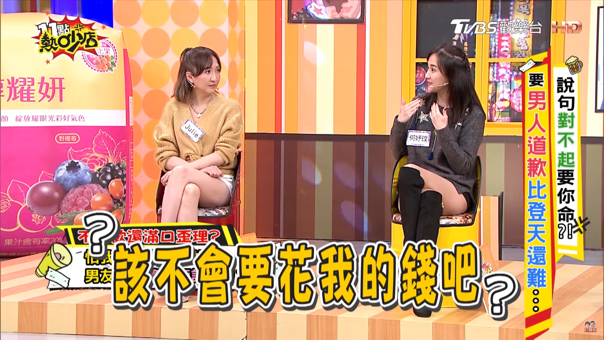藝人何妤玟在節目《11點熱吵店》談到談戀愛遇到的糟糕事,她透露30歲的時候有交往一任男友,由於當時心理狀況不好,所以跟對方透露想要暫時不工作,沒想到對方竟表示:「該不會要花我的錢吧!」甚至搬出算命師的說詞,就是想讓她繼續工作。不僅如此,還曾遇過吹噓性能力很強的男生,實際上卻並非如此,認為如果連小事都可以嘴硬,其他事情更不用談!