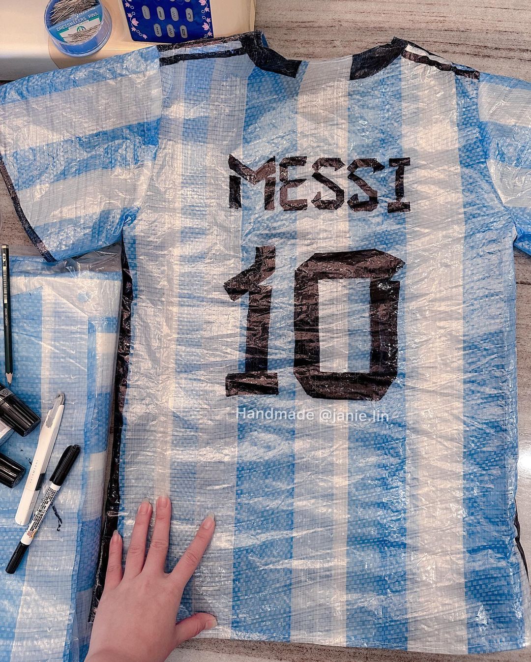 泥泥學姐低成本COS梅西!衣服被撐到變形 「用1台灣常見材料」網讚:還可以當雨衣用