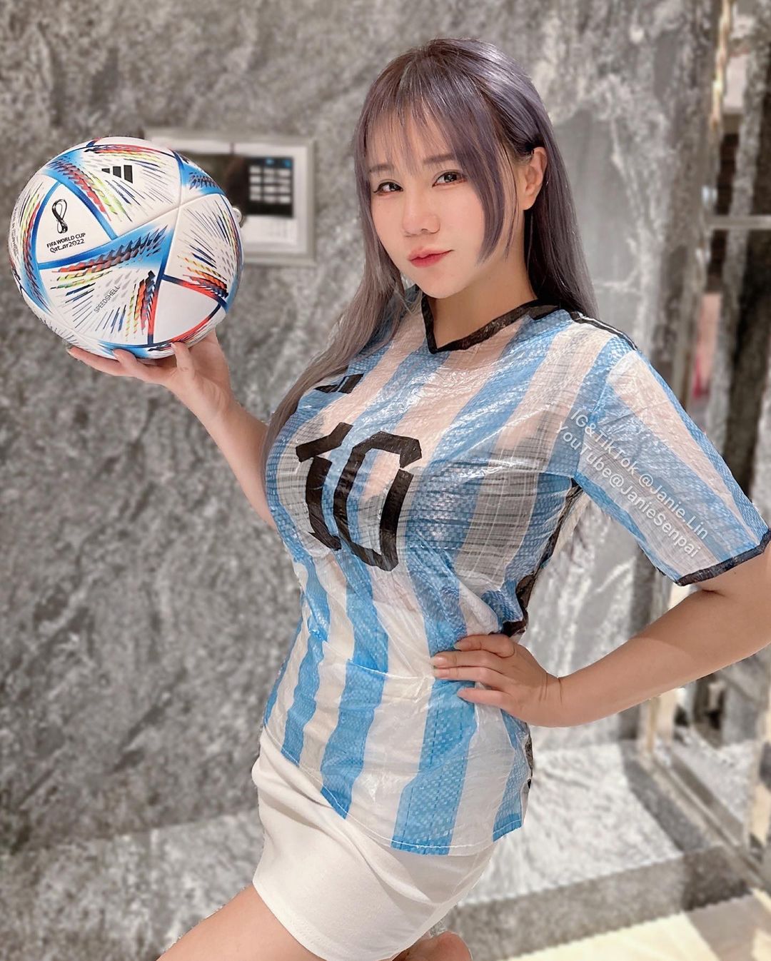 不僅如此,還有人詢問:「不喜歡梅西嗎?為什麼不支持阿根廷?」泥泥學姐則解釋:「其實沒有不喜歡誰呀~只是有特別喜歡的球隊罷了!」並用英文表示:「怎麼會有人不喜歡像梅西這樣,人又好又厲害的球員呢?」由於她的粉絲有不少外國人,深怕網友們不曉得衣服實際的材質,她再度用英文說明:「這是用尼龍防水布做成的衣服,這個東西在台灣經常被使用。」