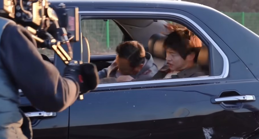 為了盡力呈現人體在車禍遭撞時的衝擊力,宋仲基和李星民必須用盡全身不規律地晃動,甚至宋仲基還得幫忙「撒玻璃」,為讓車體被撞壞的畫面更為真實!不過雖然劇中看起來驚悚,但宋仲基和李星民拍攝時「搖頭又晃腦」的模樣卻旁人看起來相當搞笑,而當導演喊「卡!」後,大家也忍不住笑成一片!