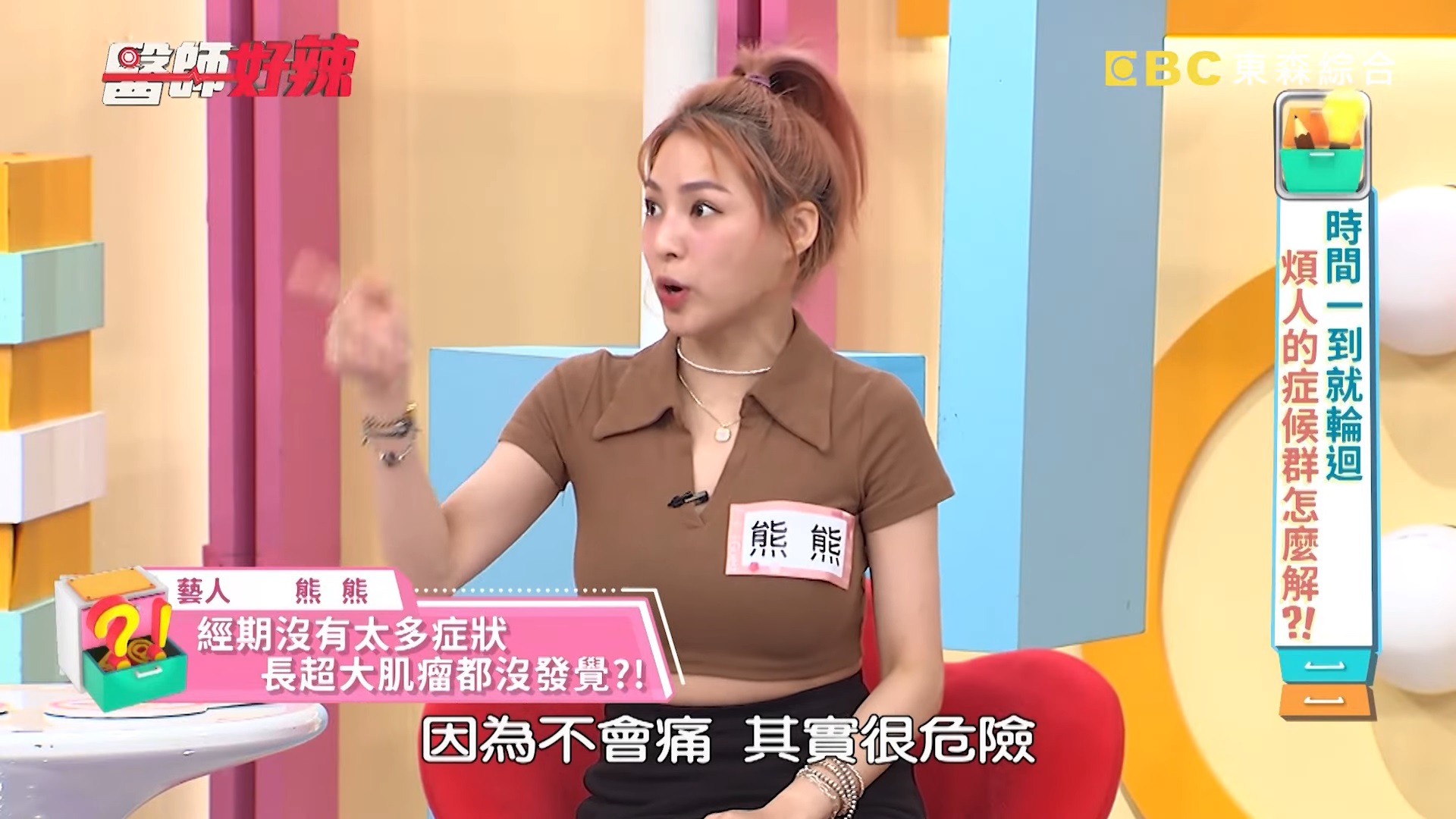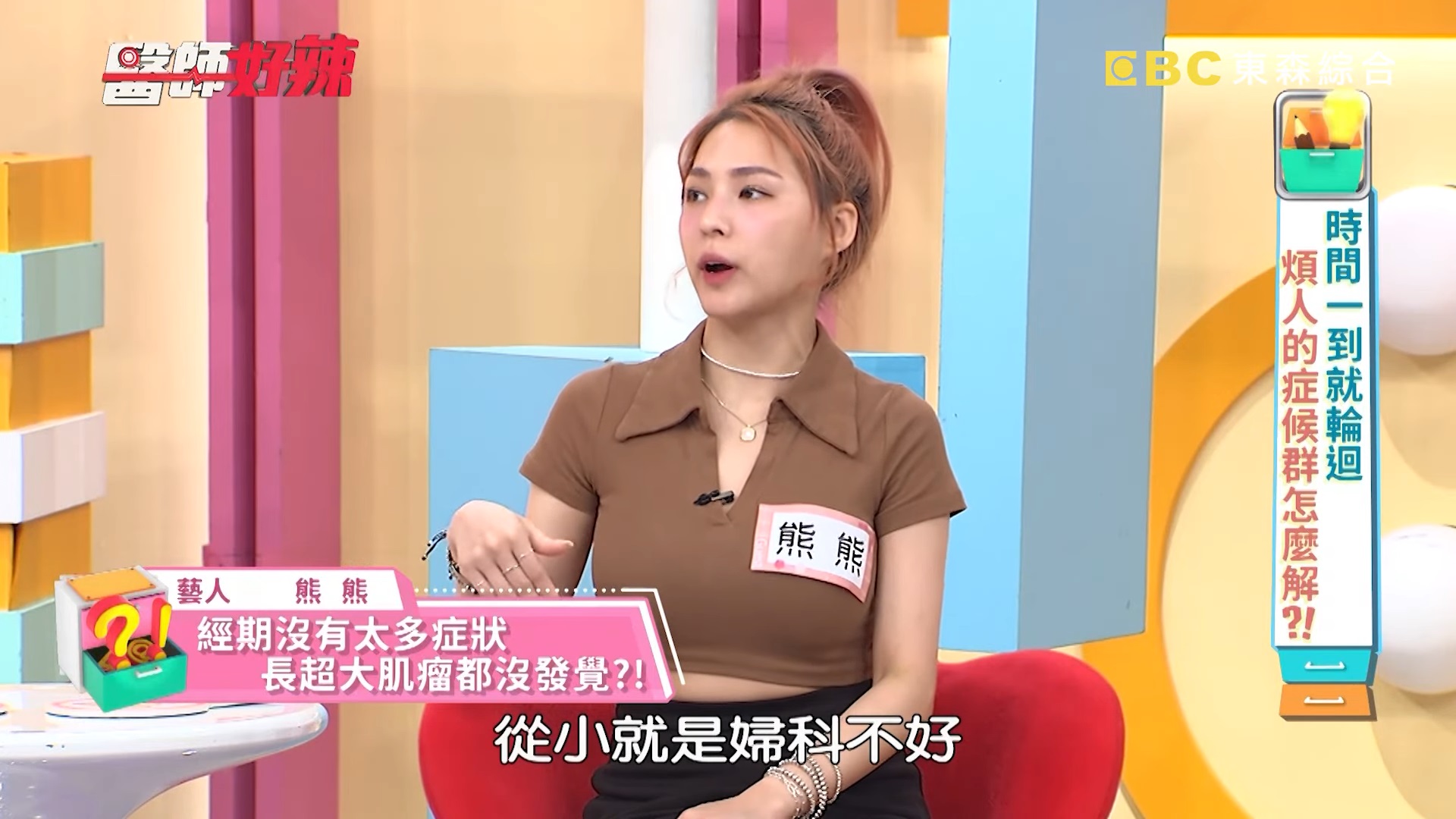 藝人熊熊日前在節目《醫師好辣》透露從小就有婦科問題,雖然長大之後懂得如何保養,不會經痛,卻也是因為這樣疏於留意,因此經期來了半年還不覺得有異狀,直到有一次錄影完血崩,看醫生後才發現1疾病卻不自知!